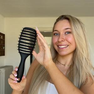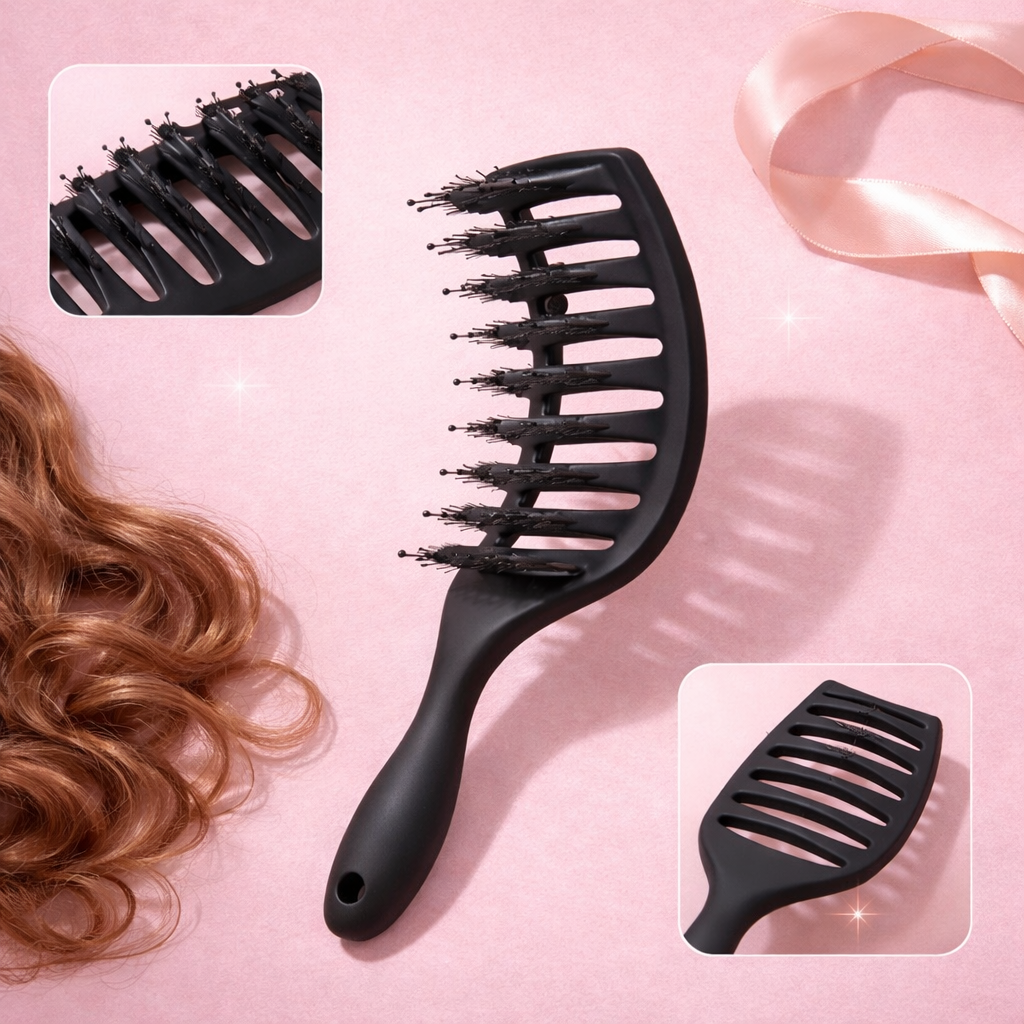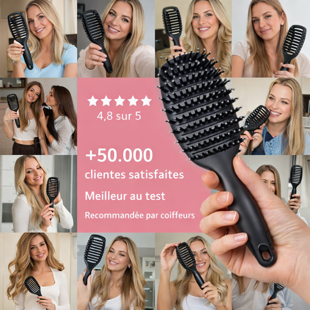 Sa forme incurvée ergonomique épouse parfaitement le cuir chevelu pour un brossage fluide, agréable et efficace même sur cheveux épais ou rebelles.