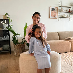 « Nos matins sont devenus tellement plus faciles ! Depuis que nous avons la brosse, ma fille aime maintenant se faire brosser les cheveux. »