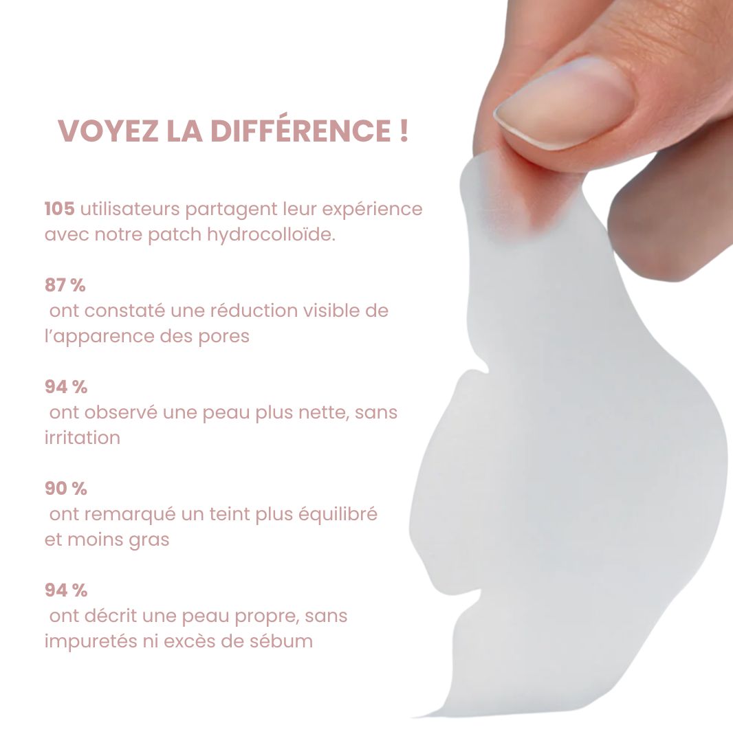 Les patchs hydrocolloïdes fonctionnent par absorption : ils extraient progressivement l’ensemble du bouchon en 6 à 8 heures, sans traumatiser la peau.