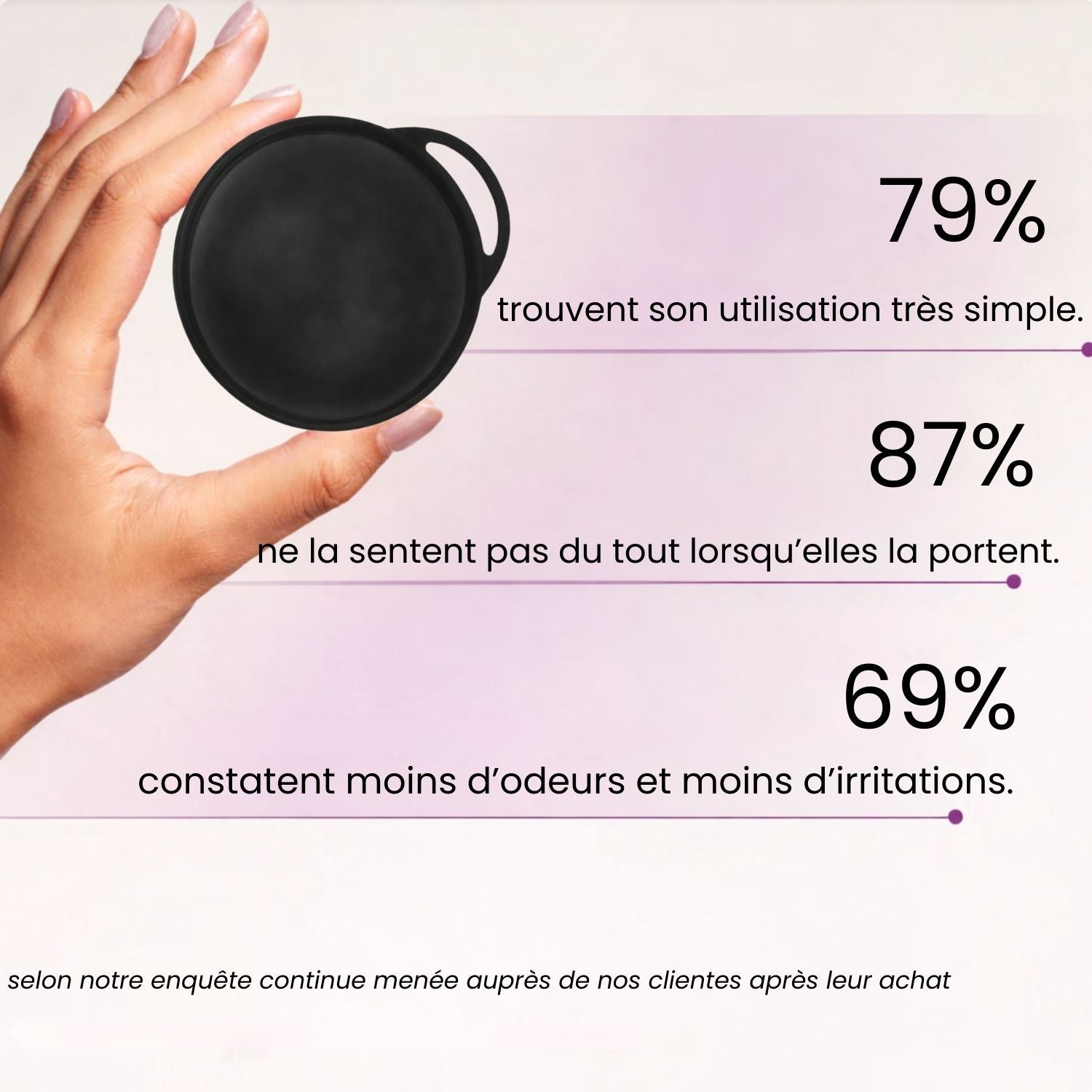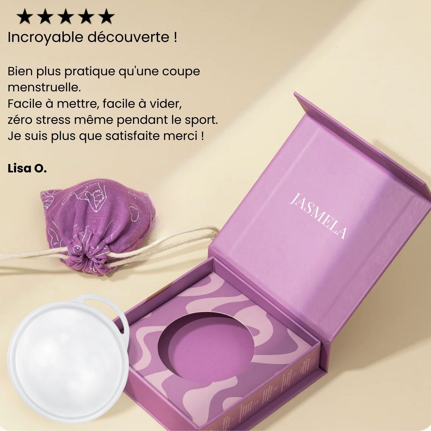 La Lunela monte naturellement dans le fornix et devient totalement imperceptible bien plus confortable qu’une cup ou un tampon.